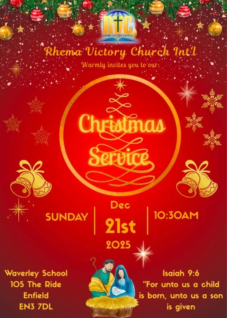 Rhema Victory Church International is a multi-cultural church based in Enfield, London with a global mandate to bring new souls to Christ.